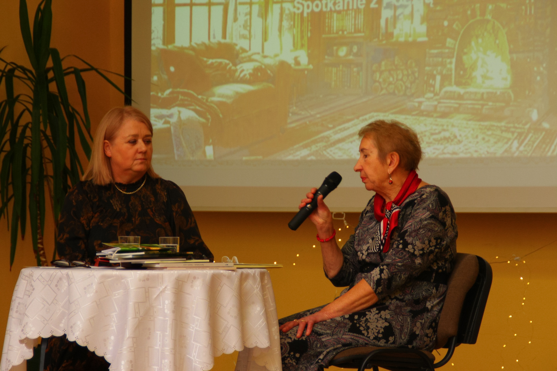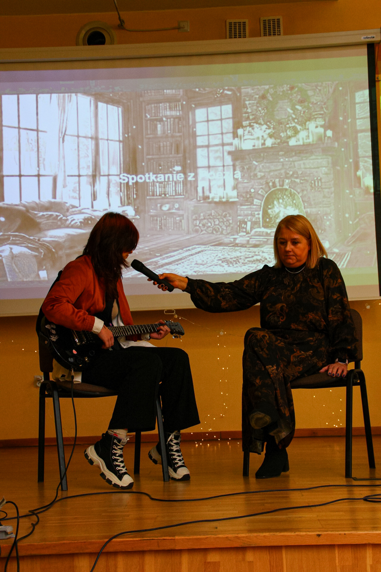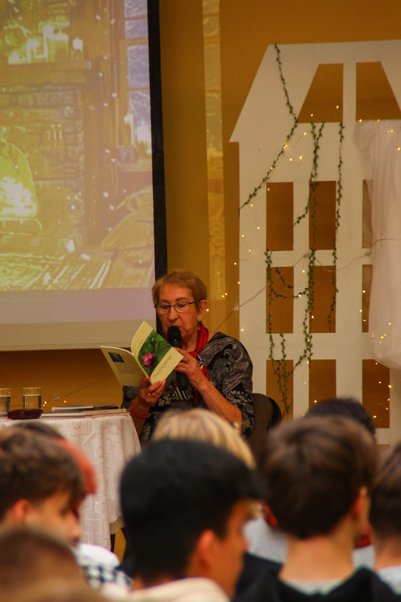Podczas spotkania młodzież recytowała wiersze autorki. Pani Maria, odpowiadając na pytania, opowiedziała o inspiracjach twórczych i procesie tworzenia poezji. Uczniowie mieli również możliwość zadawania pytań i rozmowy z poetką.