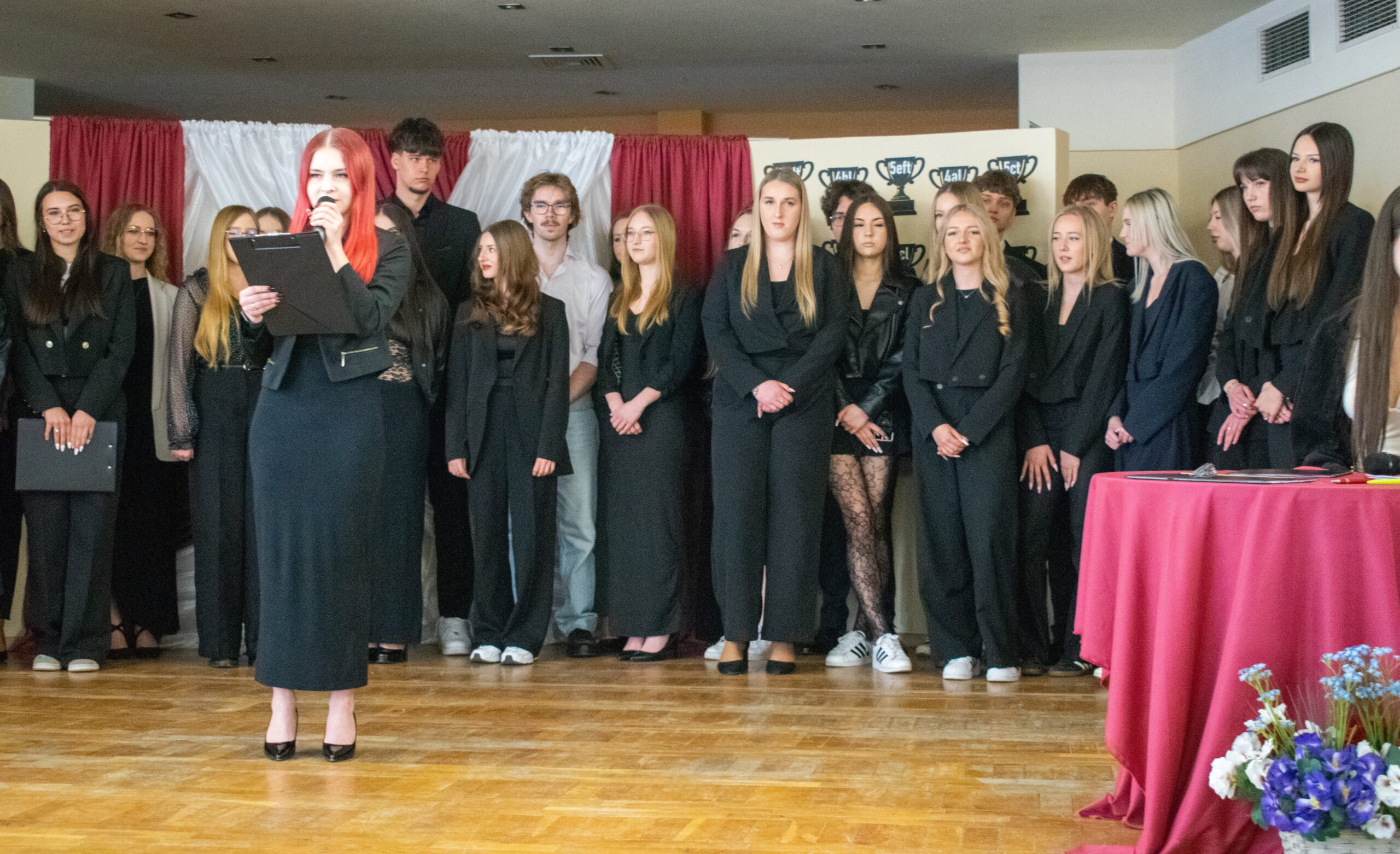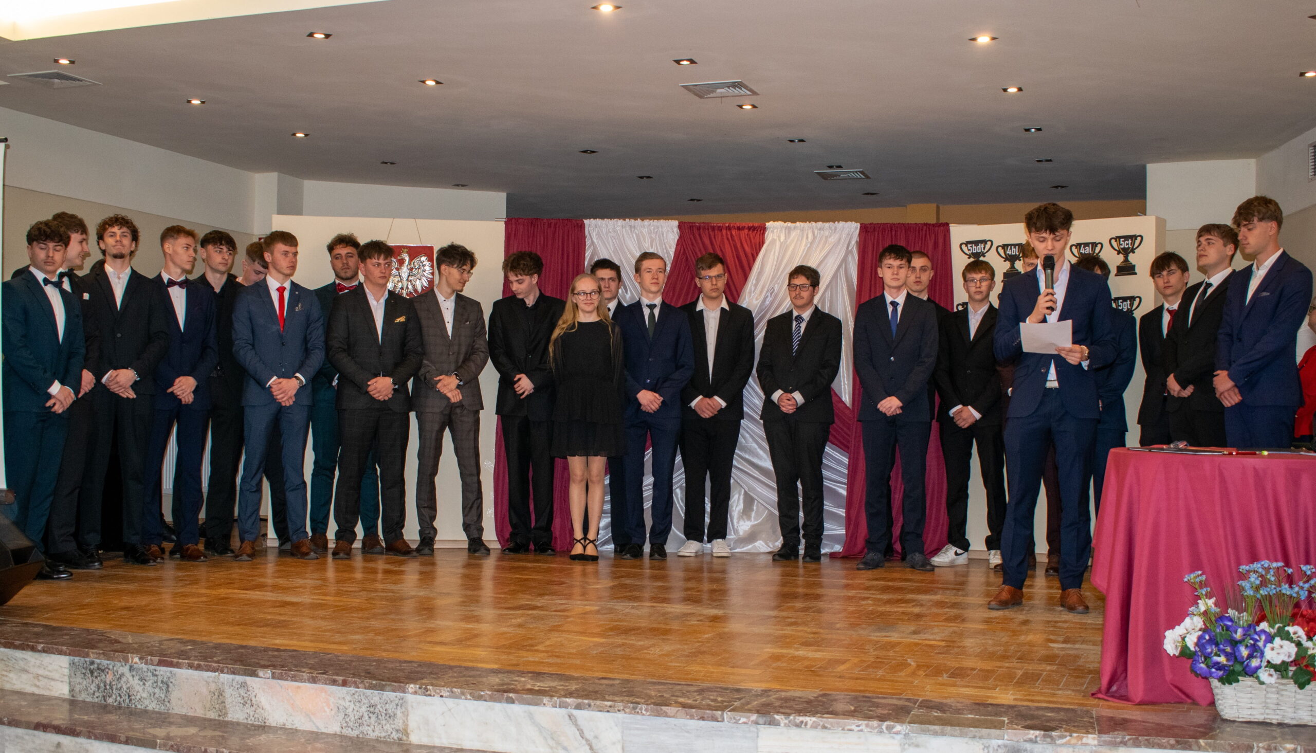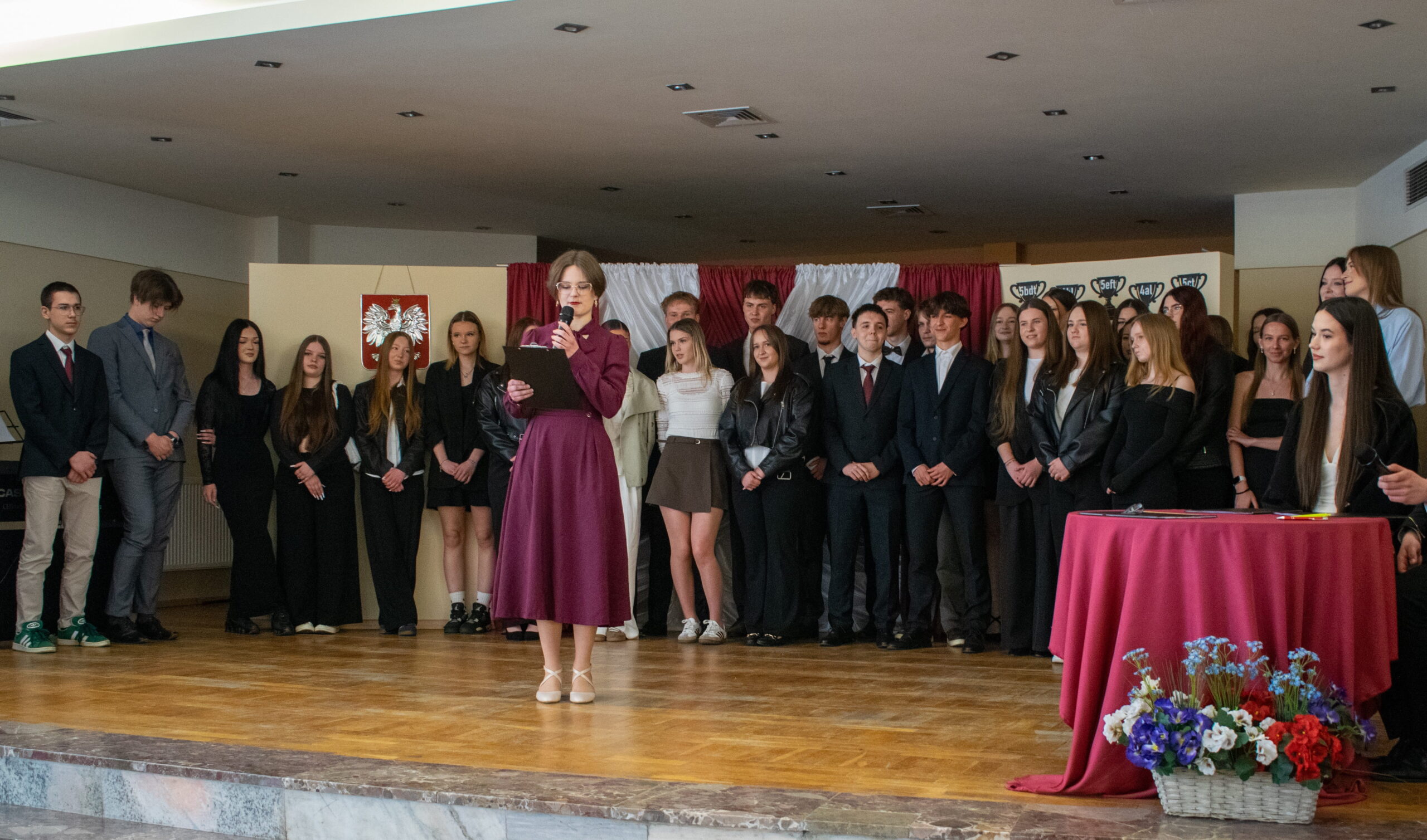 Jednym z najbardziej wyczekiwanych momentów był tradycyjny polonez przed szkołą. Dostojny taniec, eleganckie stroje i wspólny rytm przypomniały, że kończy się ważny etap życia – ale jednocześnie zaczyna się nowy.